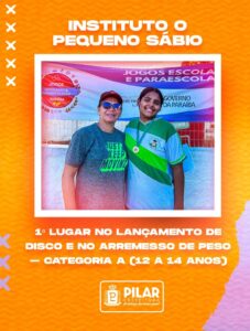 Mais uma vez, o talento e a dedicação dos nossos estudantes mostraram a força do esporte escolar em nosso município. Pilar brilhou nos Jogos Escolares da Paraíba, com atletas que deram o seu melhor e encheram nossa cidade de orgulho!